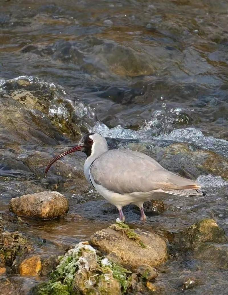 鹮嘴鹬是一种独特的中型涉禽,体长约40厘米,最引人注目的特征是它那似鹮非鹮、长而向下弯曲的红色长喙。它们的脸部有醒目的黑白图案,胸前系着一条宽阔的黑色“领带”。这种涉禽偏好于中亚和喜马拉雅地区的高海拔河流和溪流边的砾石滩,分布范围广泛,从塔吉克斯坦西部至中国东北部。
